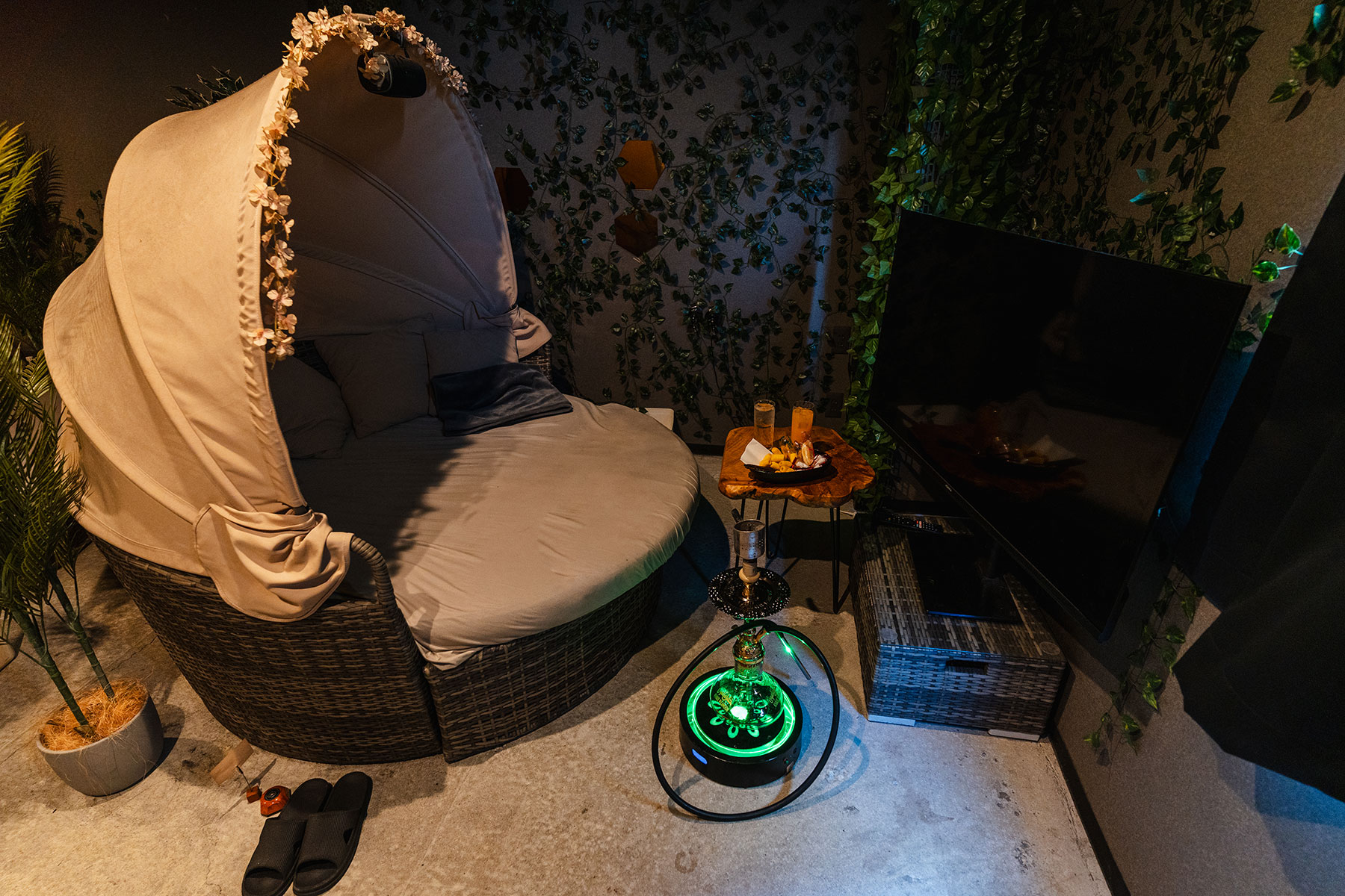 Welcome to "Chill Smoke," a speakeasy-style hidden shisha bar.